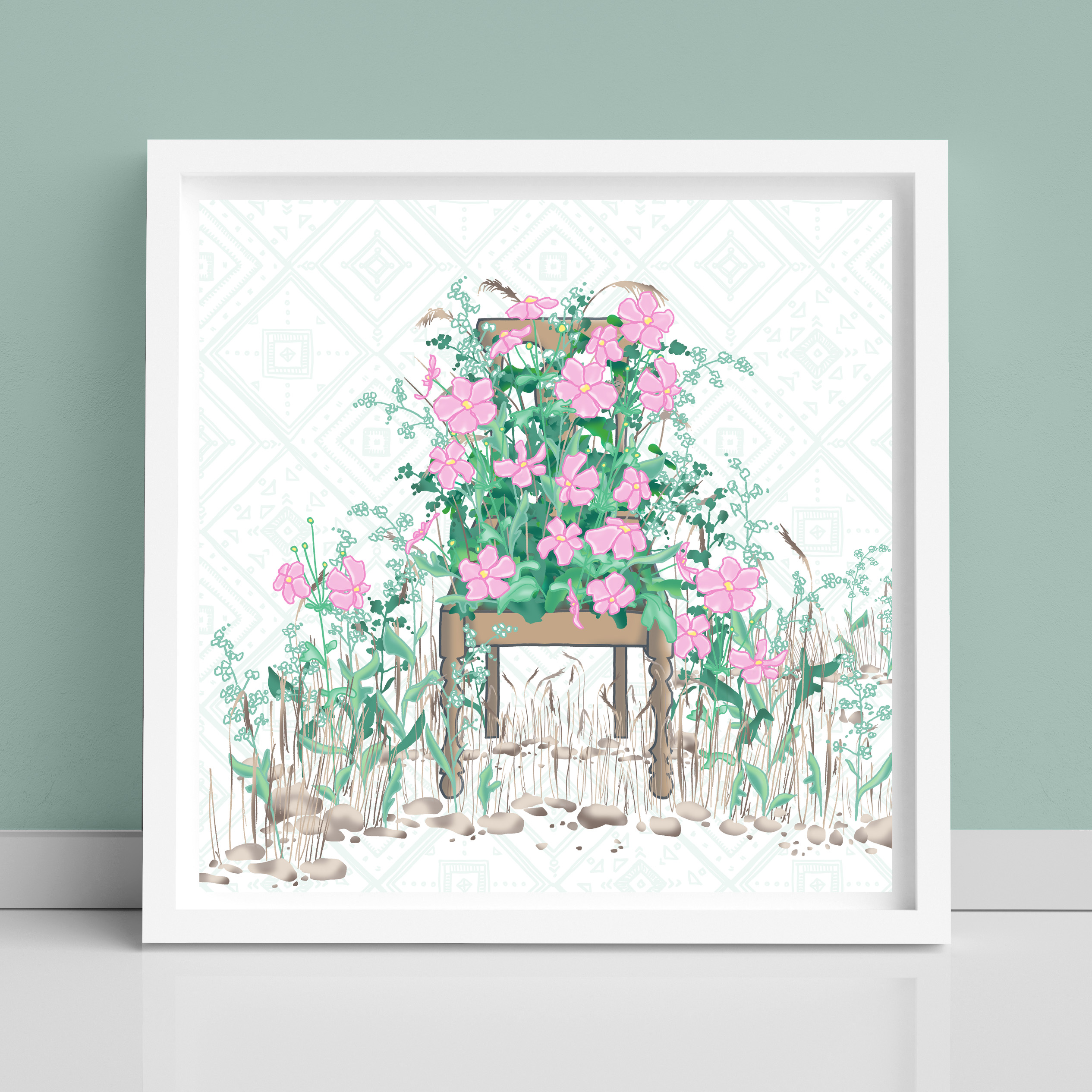 Image of Summer Chair Flowers art print created by Morwenna Sanders for Verbena Wave