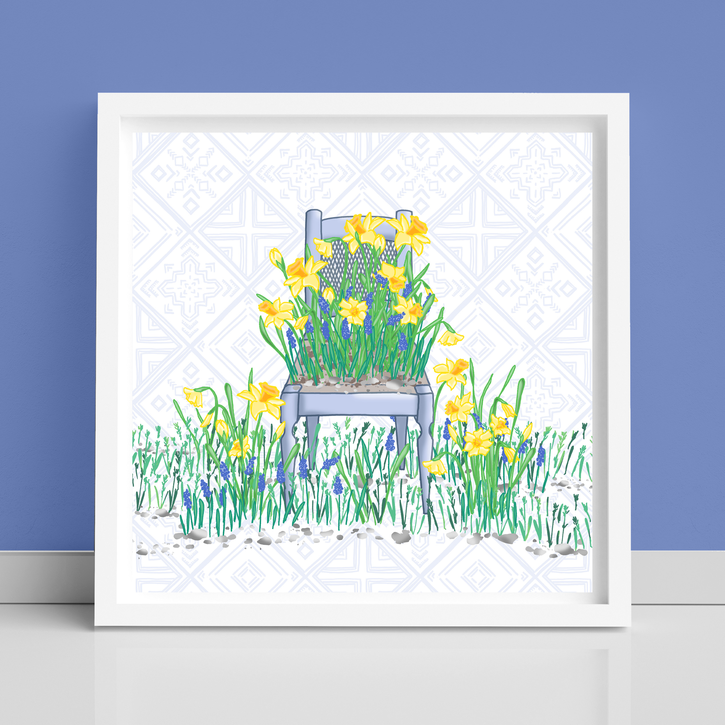 Image of Winter Chair Flowers art print created by Morwenna Sanders for Verbena Wave